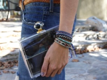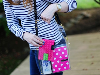 The acquisition of different colors of covers, where you can fold cosmetics, smartphone or glasses - an interesting solution for girls who love variety. In addition to such simple actions, the bag can additionally be decorated with various key rings, feathers, rhinestones and fabric patches.