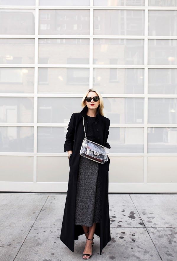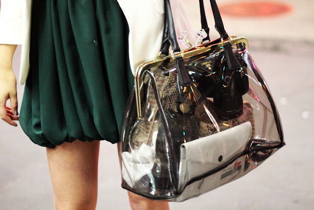 If you buy a transparent bag for a business image, pay attention to the large size. With a trouser suit, a strict skirt and a dress, bags with a long strap look very impressive, shaped like diplomats and briefcases. When the dress code is not too strict, you can afford a medium-sized model. This season is popular accessories "bag in the bag", this option is good to hide a thing that is not intended for the views of others.