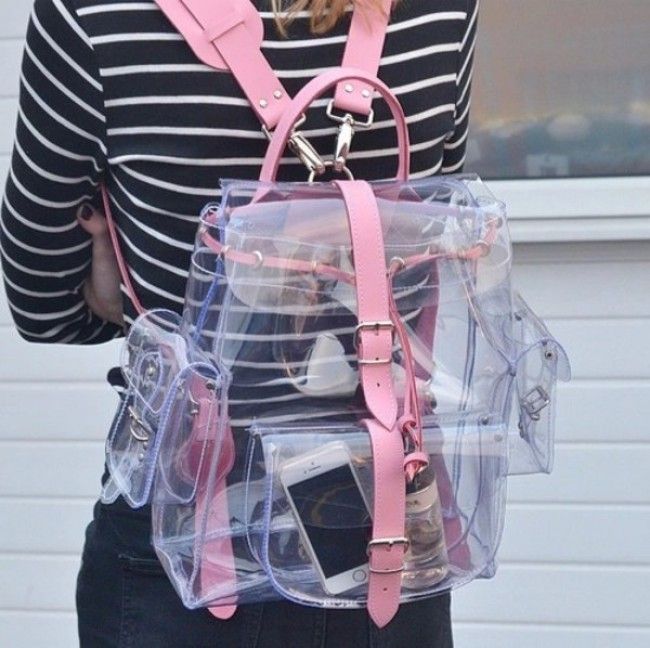 Today, the range of transparent handbags is so large that it is easy to choose a model to your taste. Large-format products, as well as stylish backpacks are well suited for a beach holiday, and for walking around the city. Bag-sacks look very good, especially in bright, saturated colors.