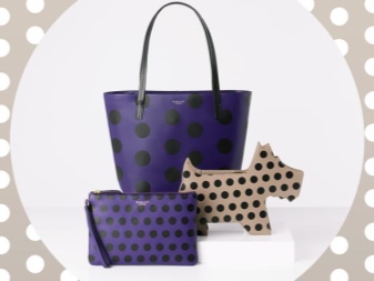 As the decorative elements of the bags, the designer uses metal fittings (buckles, large rings, rivets), finishing lines, special cut designs, folds, leather applications in the form of bulk flowers. Each model is decorated with a logo that is a brand identity: the name of the brand and the dog of the Scotch Terrier breed are mandatory design elements.