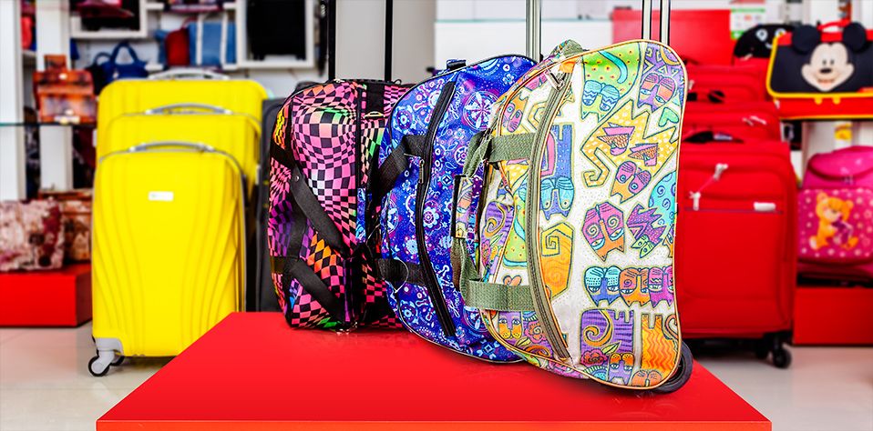 Textile travel bags are complemented by a variety of prints, from floral to geometric and abstract.