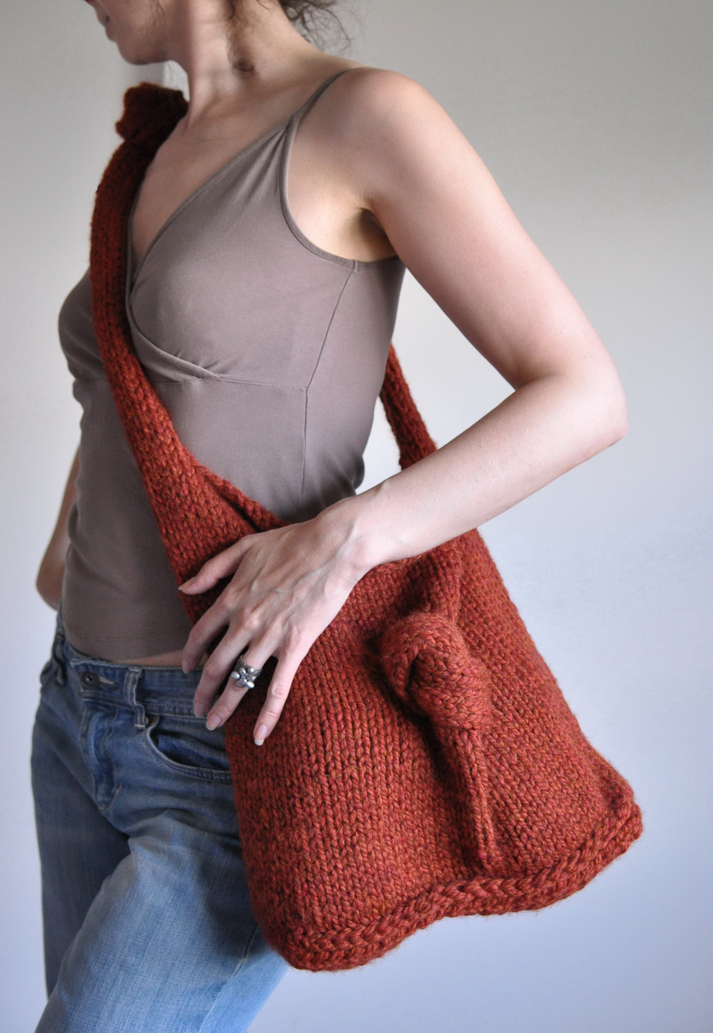 Touching knitted handbags can add kindness and tenderness to your image. A cotton lace cloud associated with craftswomen will be a graceful addition to a summer dress. In cool weather, accessories made of wool and knitted together with volume will give a feeling of warmth and comfort.