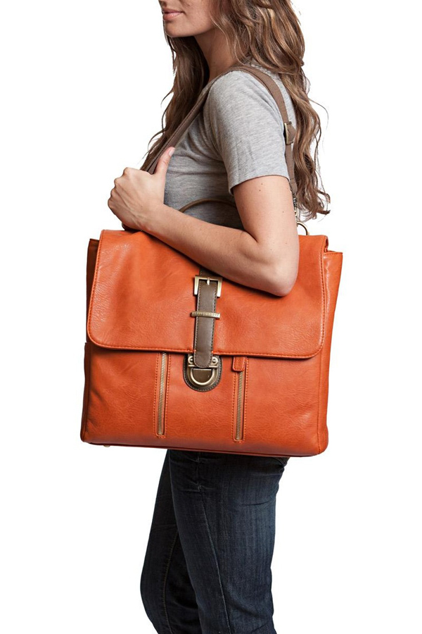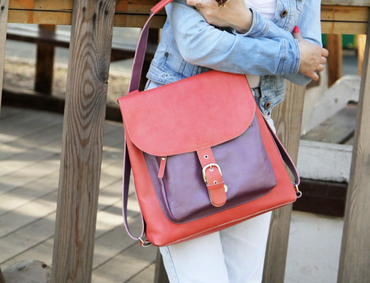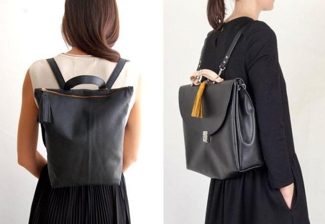 Such an original women's bag, which turns into a backpack, can be reincarnated into other useful accessories. For example, you can transform it into a solid and business portfolio or a miniature and flirty handbag.