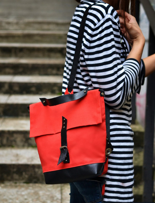 - For example, textile backpacks, complemented by leather pieces of different colors, look very interesting and original.