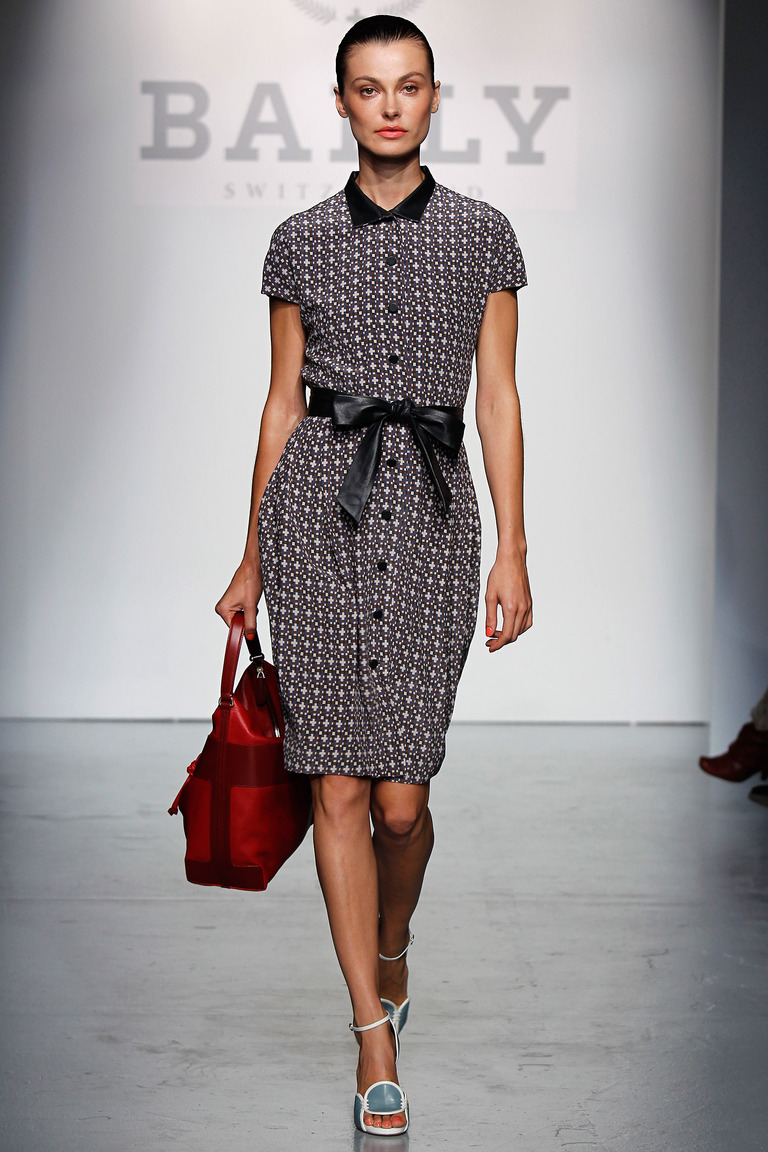 - A strict straight dress with a monochrome print, a black collar and a similar belt at the waist can be complemented with a dark red medium size bag, as well as gray sandals on a thin heel. You should have a discreet but very stylish look.