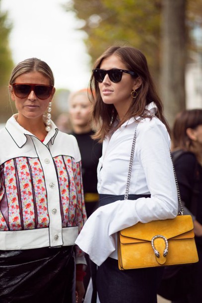 The average handbag is a great option for those who do not like too small or large sizes. You can buy a bright yellow model with a small buckle or brand logo, they always look very profitable. One of the best is a handbag over the shoulder or a small bag. Fine, if they are decorated with rivets, rhinestones or beads - for street style this is the thing. Yellow floral print, animal and floral motifs look tender and elegant.