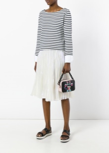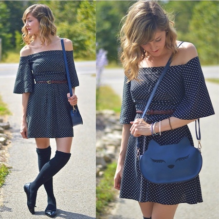 - A flirty dress without a print will make a duet to a tablet bag, if you add shoes and accessories with shades present on the bag to the set.