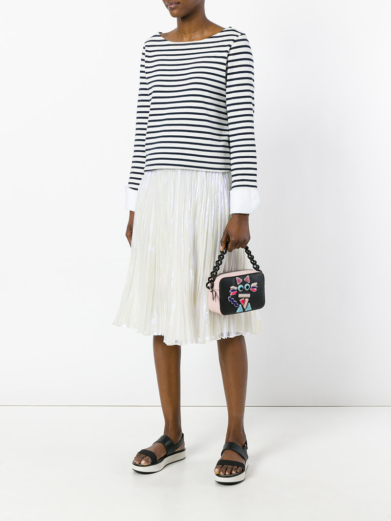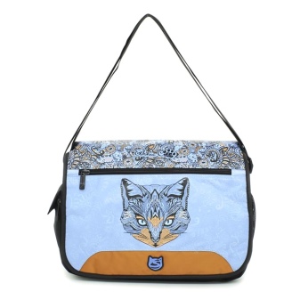 - Travel bag in the form of a cat's muzzle actual in sporty style. A denim jacket worn over a jersey and skinny is a fitting trio for such an accessory.