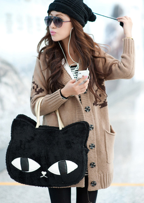 Accessories with cats are popular for more than one season. Today their styles are very diverse. This is not only colorful prints in the form of a stylized pattern, photo printing and even incredibly exquisite patchwork applications. Thanks to creative designers who love to shock modern fashionistas, the world presents novelty bags in the form of soft toys and even realistic models that successfully resemble real animals.