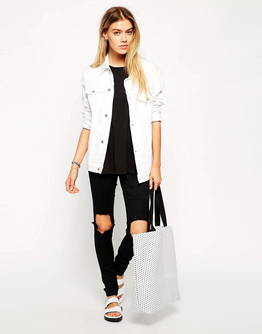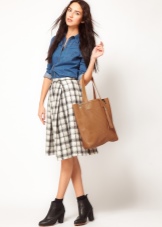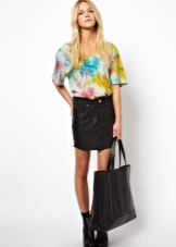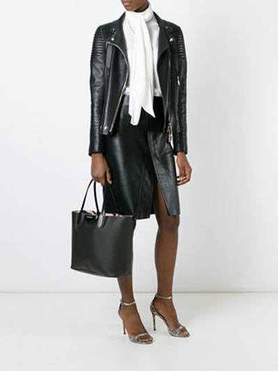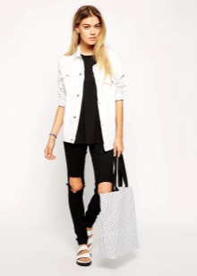 - An ensemble composed of a leather skirt to the knee, a white blouse and a shortened leather jacket will look stylish and bold. It should be complemented with a black shopper, a white neck scarf and sexy sandals on a thin stiletto heel.