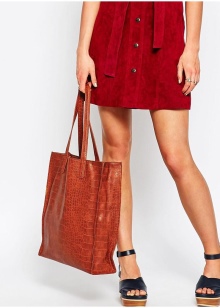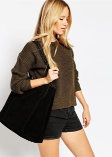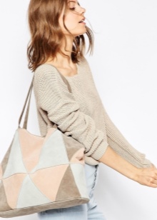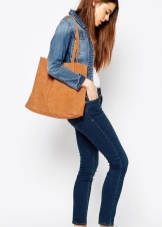 Very gentle and original look shoppers from velvet suede. It can be both natural and artificial. The soft and fleecy surface of such accessories attracts special attention from customers, therefore many of them prefer suede models.