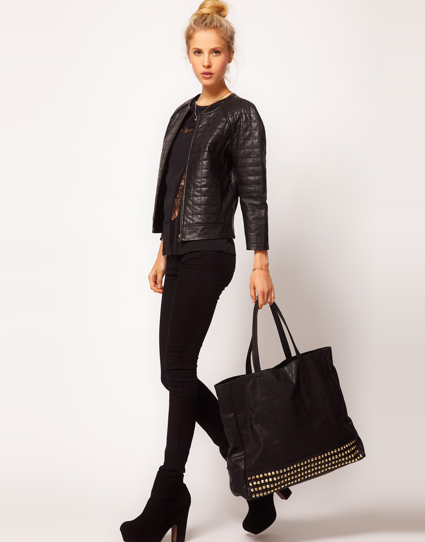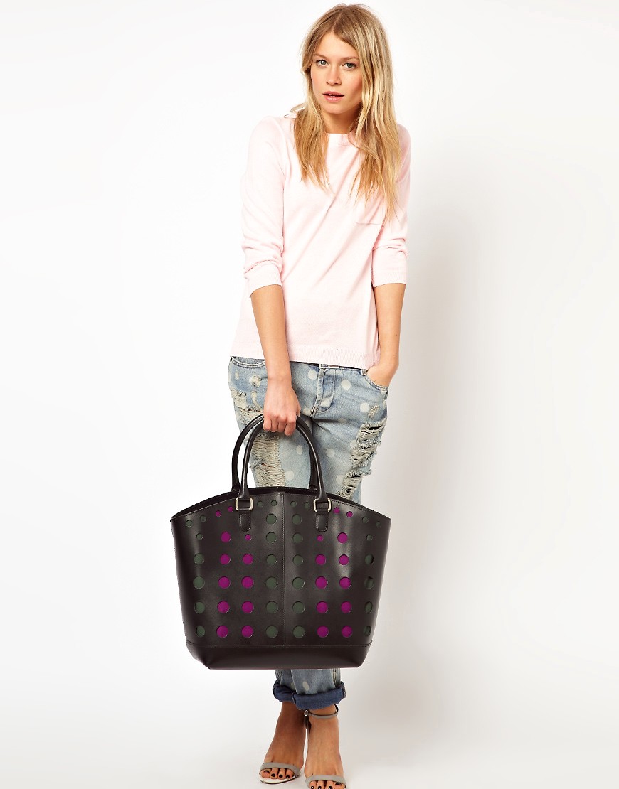 The trend of this season are leather shoppers with perforations. It appears on the material due to the processing of the laser. So simple, but very interesting patterns turn out.