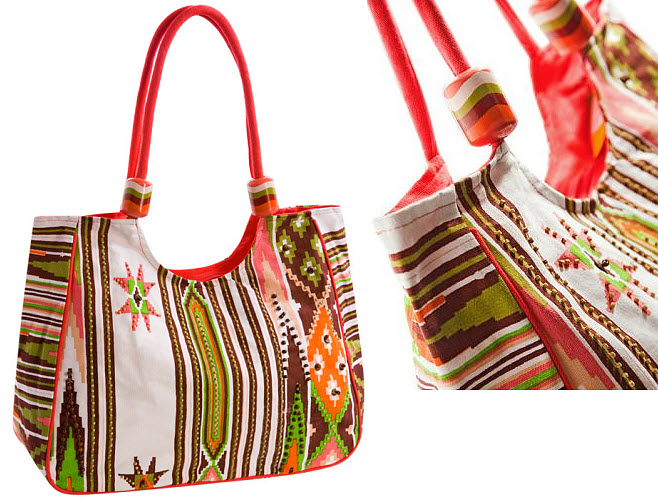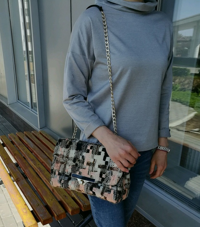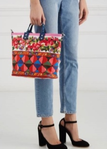 - A motley, multi-colored bag is best combined with plain blouses, tops, dresses;
