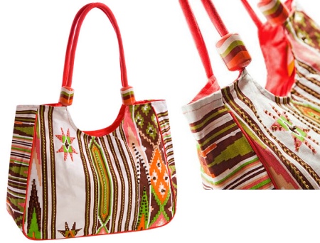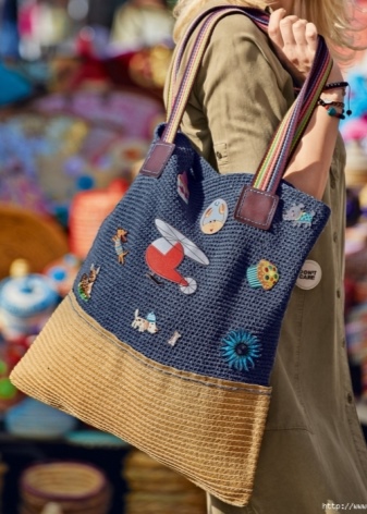 A very popular decor textile bags is the technique of "patchwork". Especially if the summer accessory is created by hand. The essence of the decoration is to use pieces of fabric that are different in size, shape, color and print. The finished product is very reminiscent of a quilt, which is why the technique got its name.