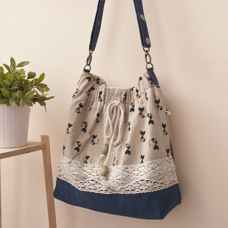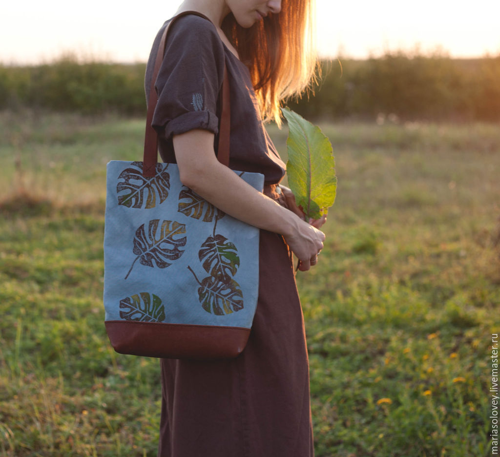 - Cotton - natural, environmentally friendly hypoallergenic material. Pleasant to the touch fabric, very soft, perfectly absorbs moisture, does not electrify. Ideal for everyday summer and beach bags. The material is very practical, it is easy to wash, it dries quickly, it is well ironed. Does not stretch when washing, so bags perfectly retain their shape. Looks great in different color combinations and decorated.