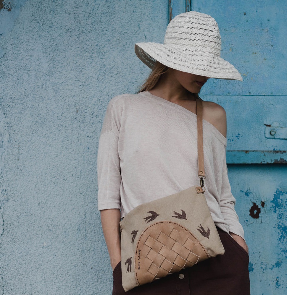 - Flax - one of the most used summer materials. Lightweight natural material has a high breathability. It does not cause an allergic reaction, it is aesthetically attractive, it is perfectly suited for different types of decor, including photo printing, embroidery, and applications. Linen bags are usually quite roomy, but compact. They can quickly collapse and hide, they do not take up much space.