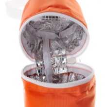 The principle of the bag is to use special insulating materials. Most often it is synthetic fabrics, they are durable, unpretentious in care, waterproof. The effect of a thermos is created by using a polyurethane, polyethylene or foil strip between the inner and outer layers of the accessory. Nylon or other waterproof fabric is used as the outer material. The model must be equipped with a tight-fitting lid to avoid additional heat loss.