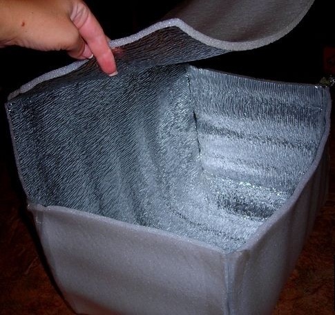 Make an elementary thermos at home is quite simple. To do this, you need a suitable size bag and insulating material. This may be foiled polyethylene foam (polyizol, thermal insulation), which is sold in hardware stores. It is good if the material is two-sided, and its thickness must be at least 5 mm. Still need scotch and scissors.