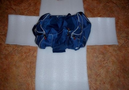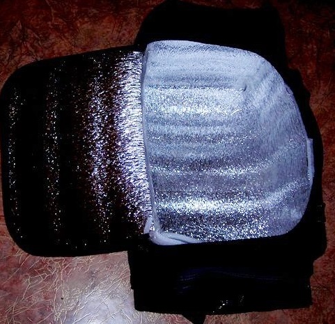 The selected bag is measured on all sides in order to make foil liner by these dimensions. Pattern drawn on the foil and cut. It should be noted that the liner must fit completely into the bag, so its dimensions must be several centimeters smaller than the real ones.