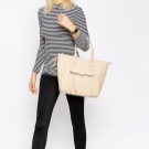 A tote bag or, as it is called simply “tout” (“that”), is a large bag with two handles without fastener on top and with a single compartment. It looks like a classic model that designers review from season to season and make it even more comfortable or original. The name has developed thanks to the English verb "to tote", which translates as "carry."