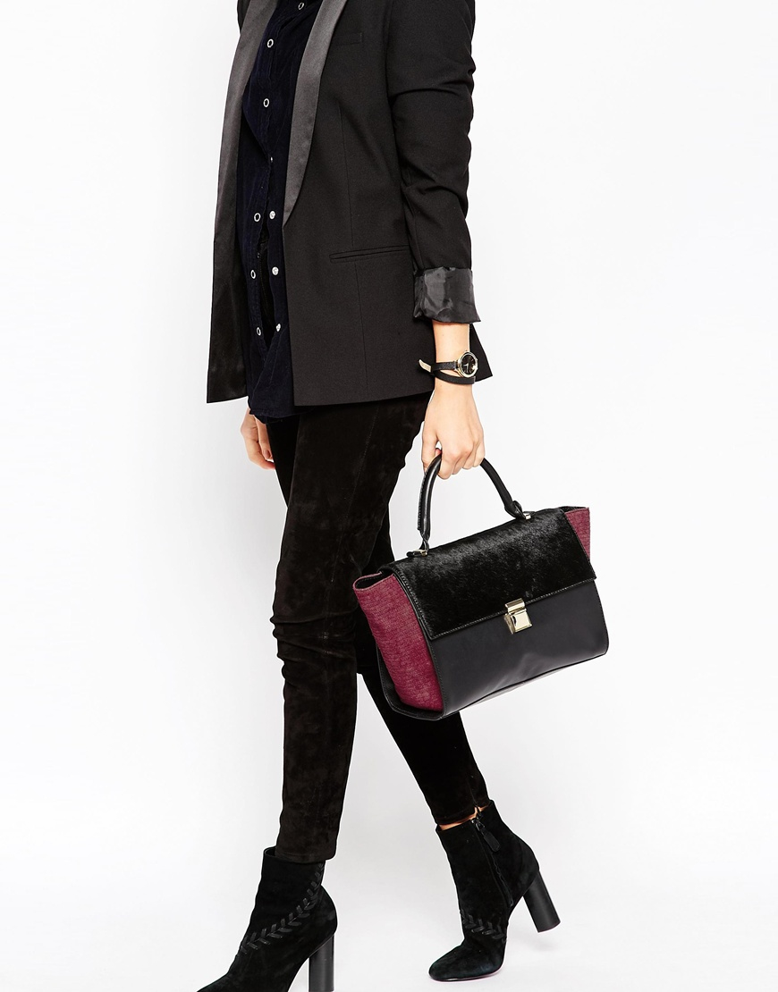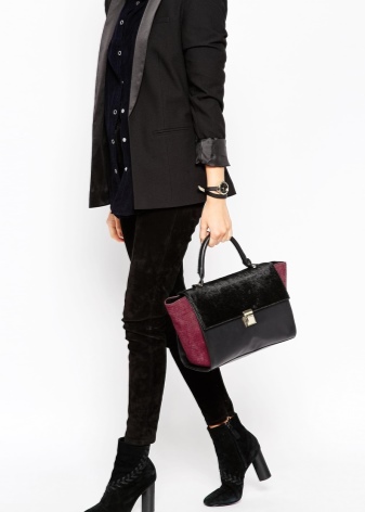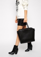 Like most bags, hounds are made mostly of leather - natural and artificial. This material is the most practical, easy to clean and looks impressive even in the traditional black matte design. The skin is often subjected to technological processing, creating all sorts of effects on it - aging, varnish shine, imitation of scales.