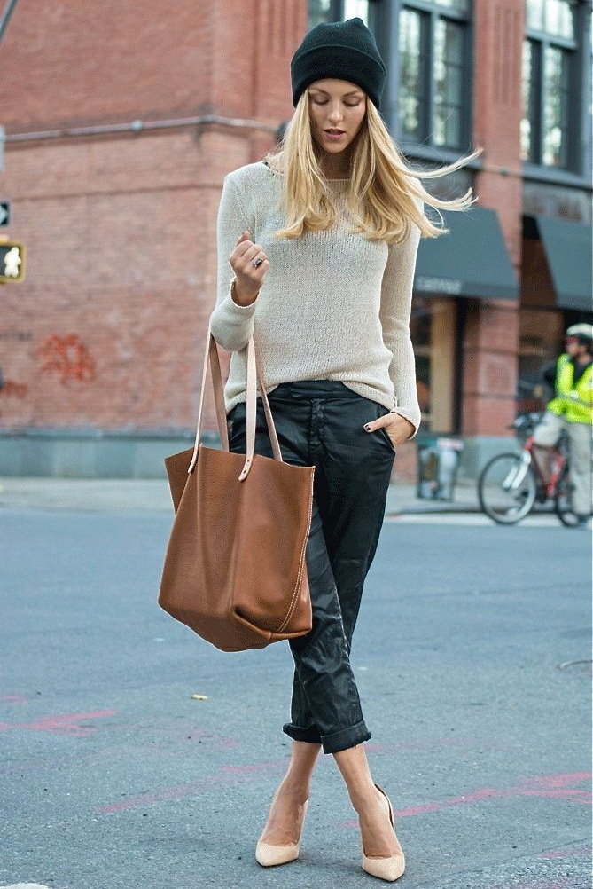A brown leather product will look harmoniously in a country style with classic blue jeans or a fluffy skirt, shirt and boots. For the glamorous direction, you can use skinny pants and jeans, shiny blouses and tops, jackets, or add rock with leather jackets.
