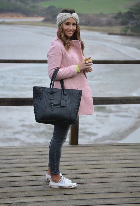 Small hats, especially with a shoulder strap or textile strap, can be part of a sports outfit with jeans, sneakers or sneakers.