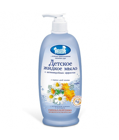 - Hypoallergenic liquid soap for children, with a special dispenser;