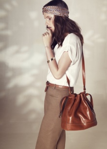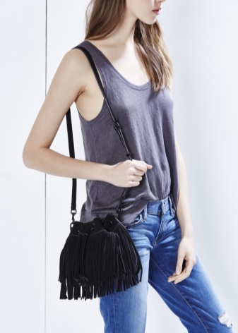 - Bag-bag - a kind of alternative to backpacks, only a more feminine model. Outwardly, it is a square-shaped product with a stable flat bottom, which has a handle of a convenient length.The way of fastening is the difference of the style: instead of the zipper, the bag is closed with the help of a lace decorated with different stoppers and decoration.