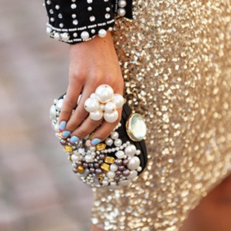 Evening bags adhere to a small and even miniature size. They are designed for special occasions, so they can hold only the most necessary things (cosmetics, keys, card and passport). These products often have generous décor, emphasizing the solemnity of the occasion. They do not know the rigid framework, so they can be made of any material.