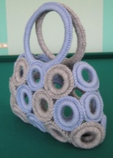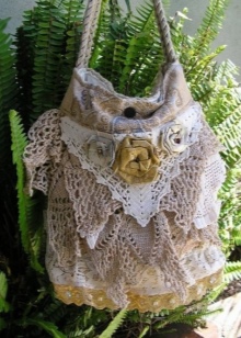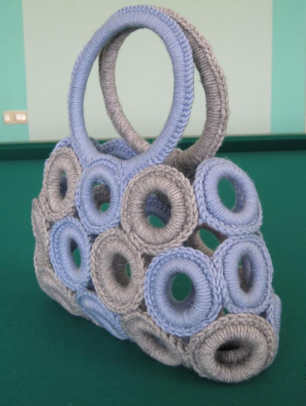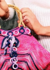 A rather unusual design for bags is a product made of rings. Separate circles are tied with threads and connected to each other. So that the contents could not be seen and fell out, a dense lining in tone with the yarn was sewn inside. For small women's handbags, in which nothing is supposed to be worn, except for a mobile phone, a purse, a comb, and a mirror - there are models without a lining.