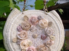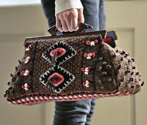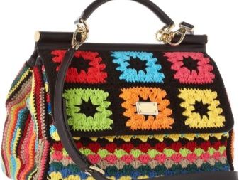 Handicrafts reached a peak of popularity back in 2011. Since then, they have not lost their relevance. Designer models set themselves the task of putting the maximum emphasis on the handbag in the image. That is why branded knitted bags are bright, embroidered with satin ribbons, complemented by other eye-catching decorative elements.