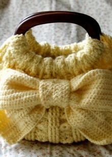 - Most likely, a knitted bag will be purchased for certain clothes, and it may not harmonize with another bow. When choosing an accessory, you should carefully consider what items of wardrobe it will look appropriate.