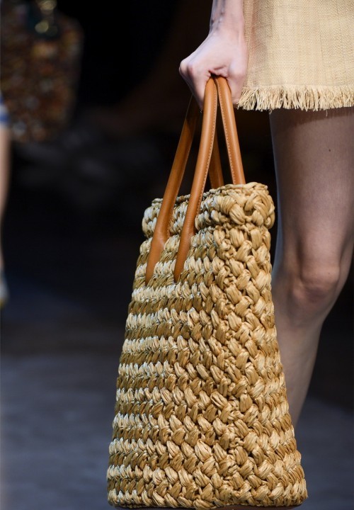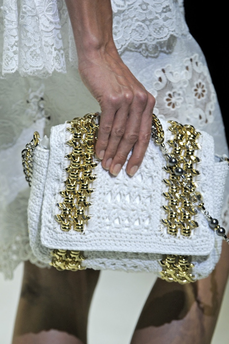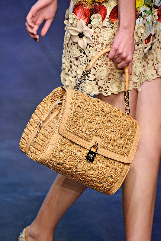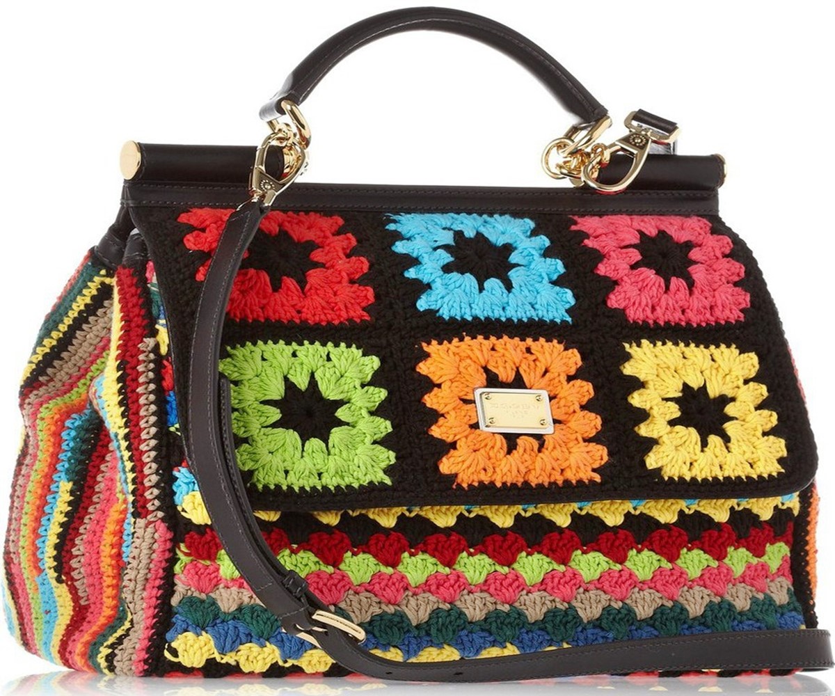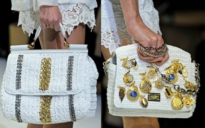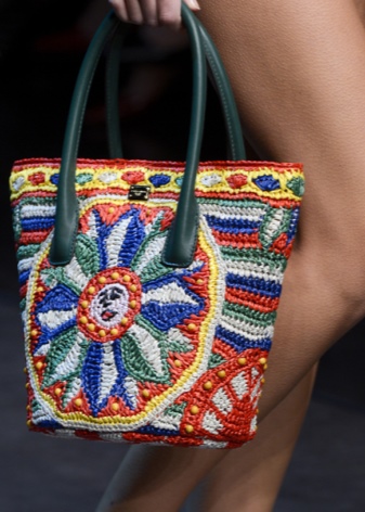 Designers of Dolce & Gabbana develop various models of knitted products: shoulder bags, clutches, and handbags. They are distinguished by interesting decorative elements in the form of cones, embossed patterns, jacquard or leather inserts. A wide range of knitted bags is also present in Prada and Chanel.