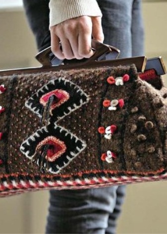 Decorative elements finally form the image. Proper combination of accessories with jewelry on the bag is an indicator of feminine taste. For the decoration of knitted products used: