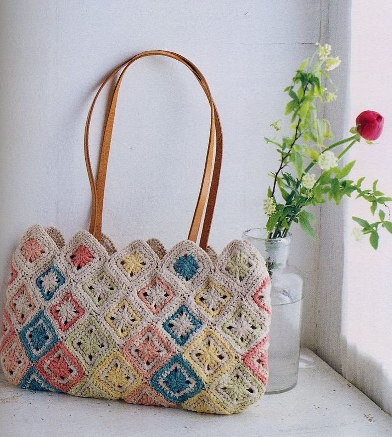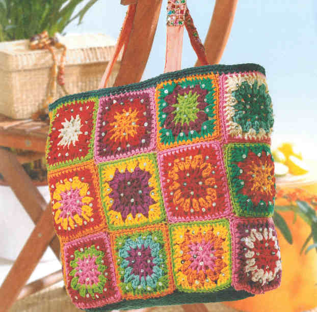 A bright model that will always cheer up and create the atmosphere of a summer holiday - a bag consisting of interconnected individual square elements. It can be either fragments with the same ornament, or completely different drawings. Such a model is a universal accessory for the summer.