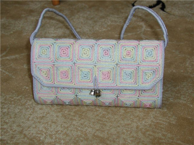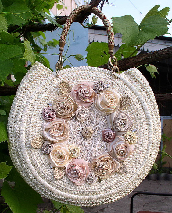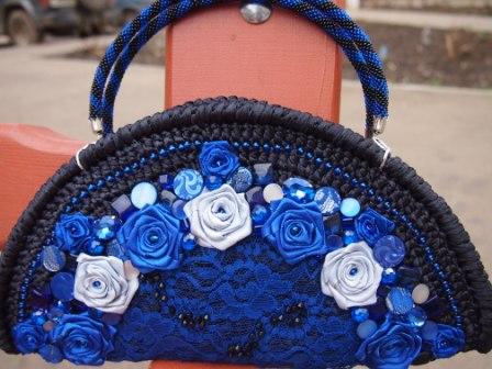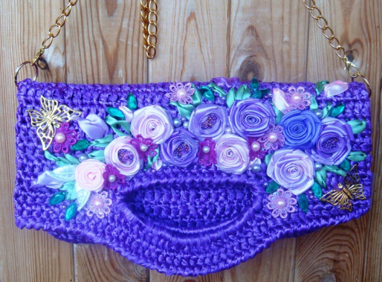 Bags, knitted and decorated with satin ribbons, look very elegant. They are light, soft, pleasant to the touch. The accessory made of satin ribbons is more suitable for creating an original evening look. Although the clutch perfectly fit into the daytime romantic image.