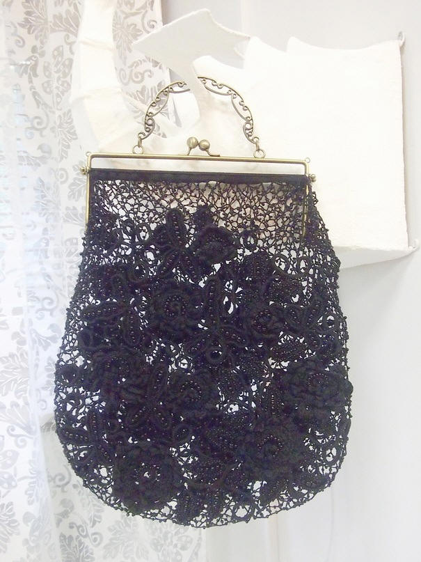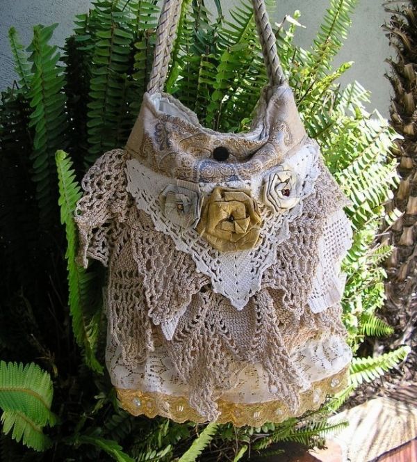 Bags with lace knitting fit under clothes made of leather and other "heavy" materials. In this case, binding will soften the image.