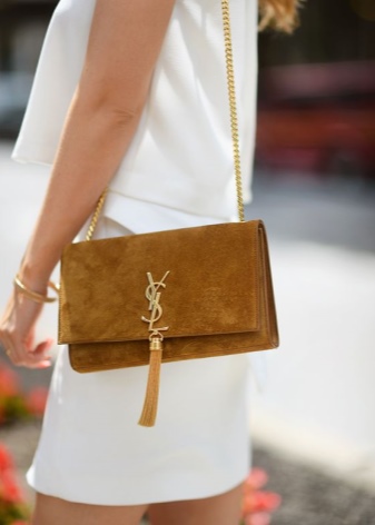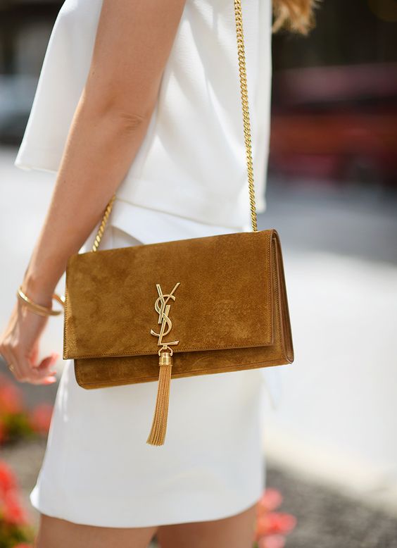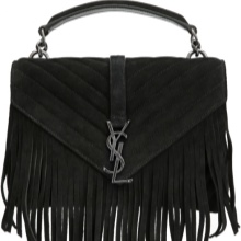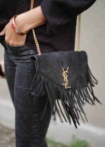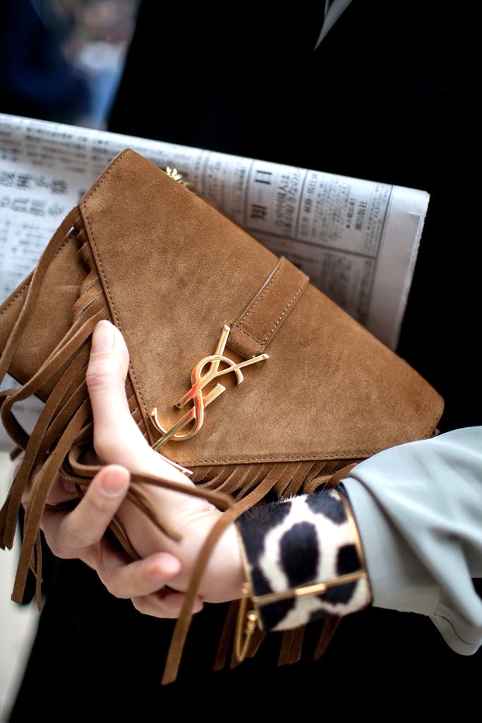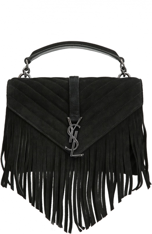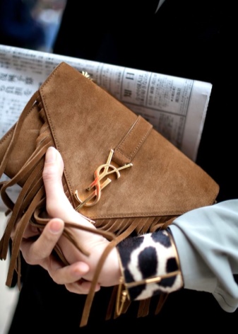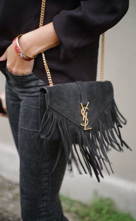 - Fresh and stylish branded handbags with fringe. They are the trend of recent seasons and fit perfectly in the light and freedom-loving images.Yves Saint Laurent offers stunning handbags of small sizes, made of velvet suede in different colors.