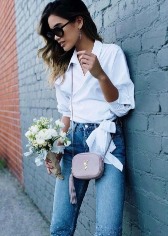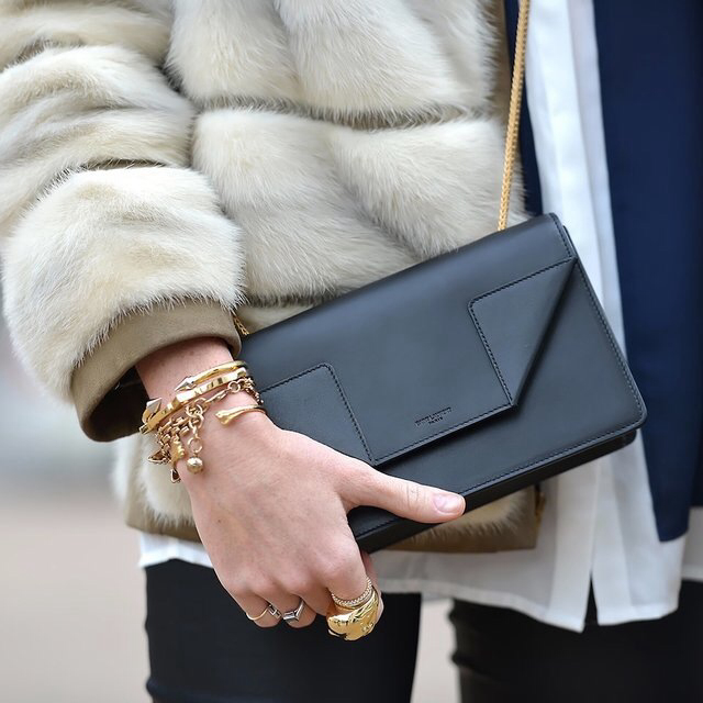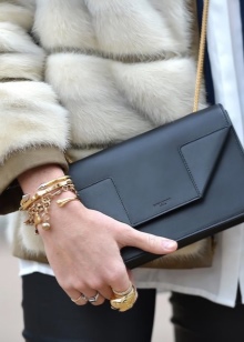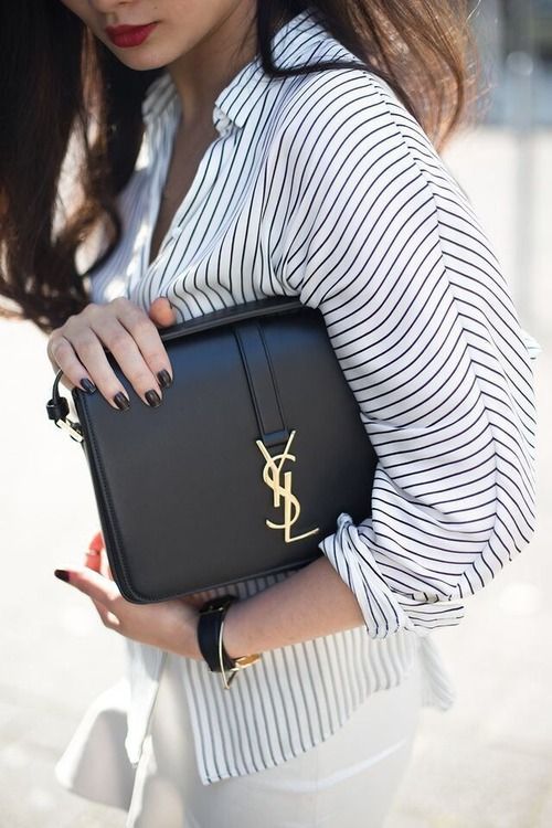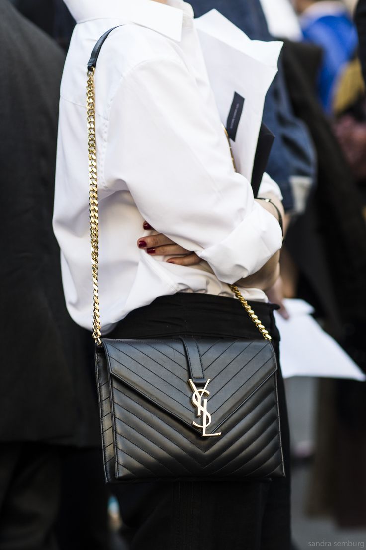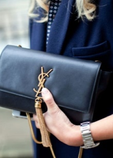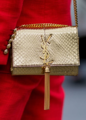 - The quality pouches from a famous brand will look great in casual style images. Yves Saint Laurent offers young ladies interesting specimens, made of natural monochrome leather with gold fittings. Instead of the usual laces, metal chains are sometimes installed in the bag-sacks.