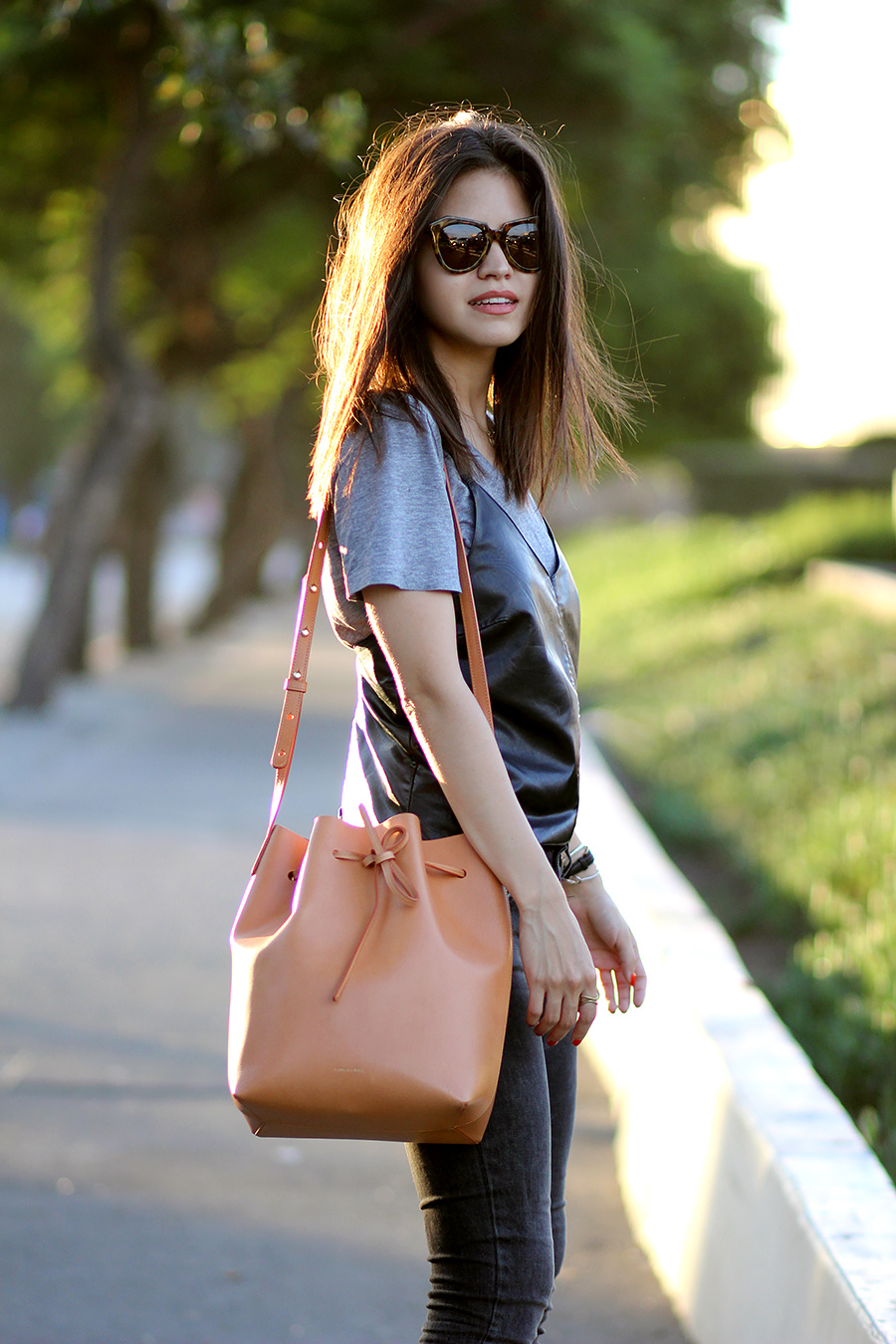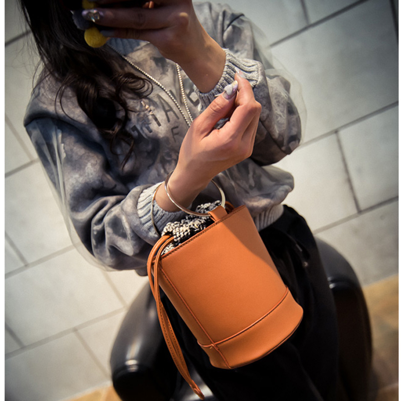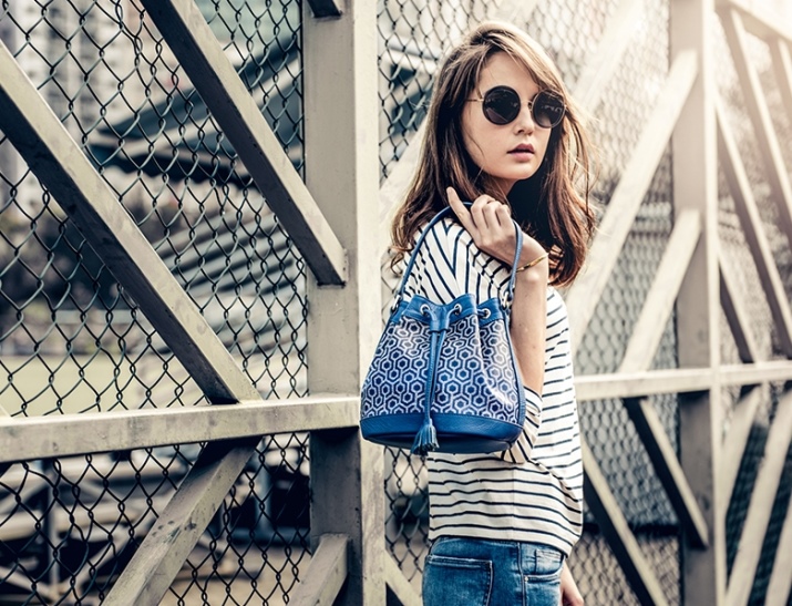 The open upper part is equipped with laces or braided straps from different materials. With these parts you can close your bag. To do this, just tighten the laces in the bundle. Such models are equipped with one shoulder handle, but in some products there are additional straps for wearing on the back. The second option is very similar to leather backpacks and pouches. Such copies are produced by the famous brand Mango.