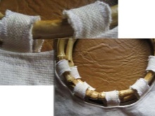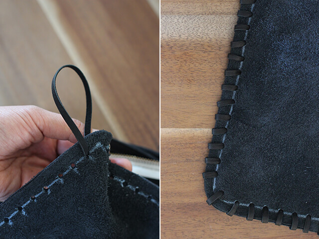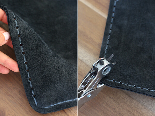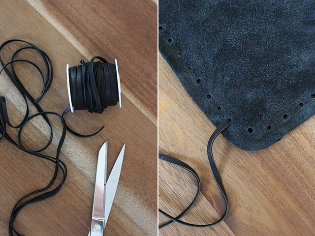 - After that, it is necessary to hook a leather braid bought in advance into the holes.