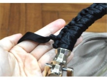 Handles on the rings - the best option. They can be easily removed from the rings and replaced with a beautiful stylish chain or strap. Another thing - static pens, which can not be removed or detached. In this case, tapes, strips of leather or fabric will help. They will have to wrap the entire handle by making a hole at its edge and securing it with a loop.