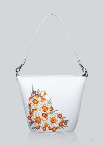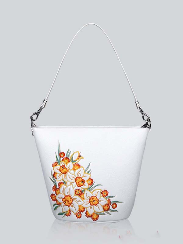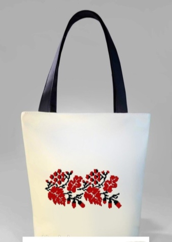 Cross-stitch is an acceptable, but rather long and difficult process. Only those girls who have a lot of free time and patience can try it out. Suitable embroidery exclusively for handbags made of very thin leather. On the other hand, the resulting accessory will look stunning, especially complementing the image in the folk style.