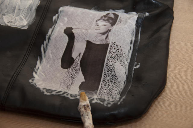 Apply a decoupage glue to each element with a brush and distribute it evenly. Glue all the parts to the right places and leave the bag to dry for about five hours.
