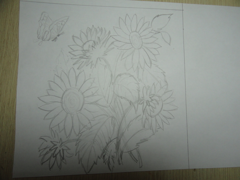- The first thing that needs to be done is to transfer the pattern to the fabric with a small pencil or pencil. Embroidery of sunflowers looks very interesting on the fabric, and it is quite easy to use.