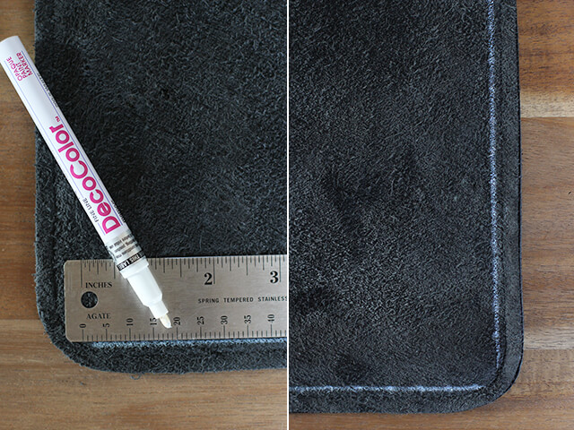 - Turn the bag inside out, and, departing a few millimeters from the seams, make small markings.