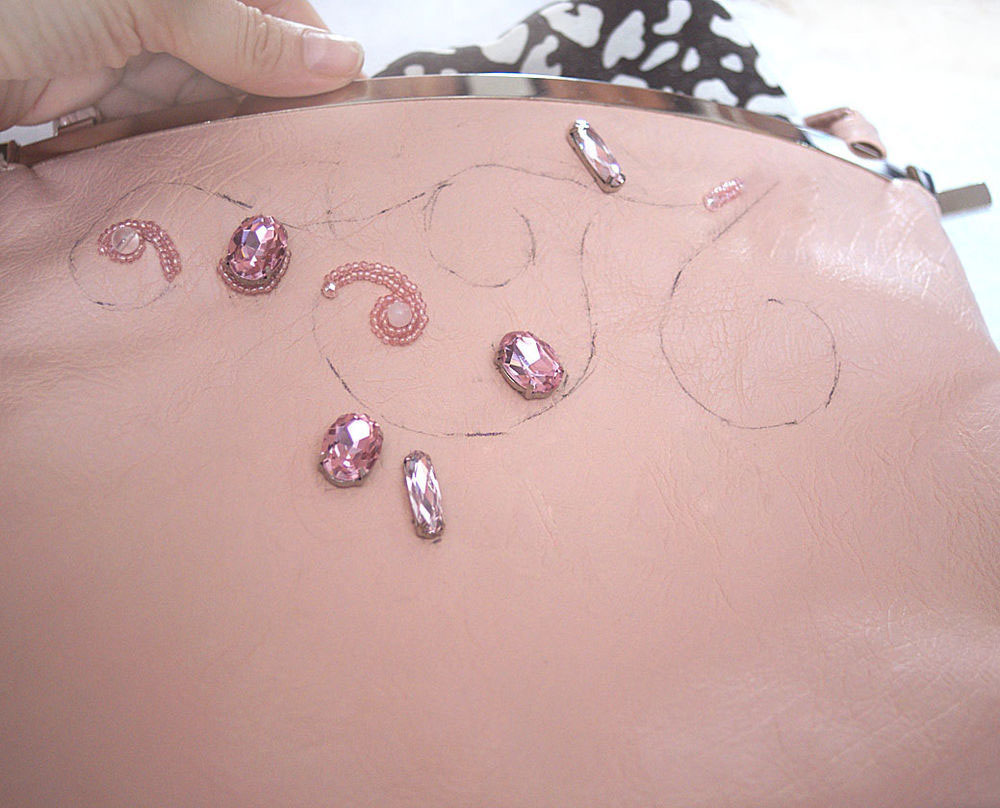In the center or side of the bag you can also embroider a small pattern or make a beautiful pattern of rhinestones or pebbles.
