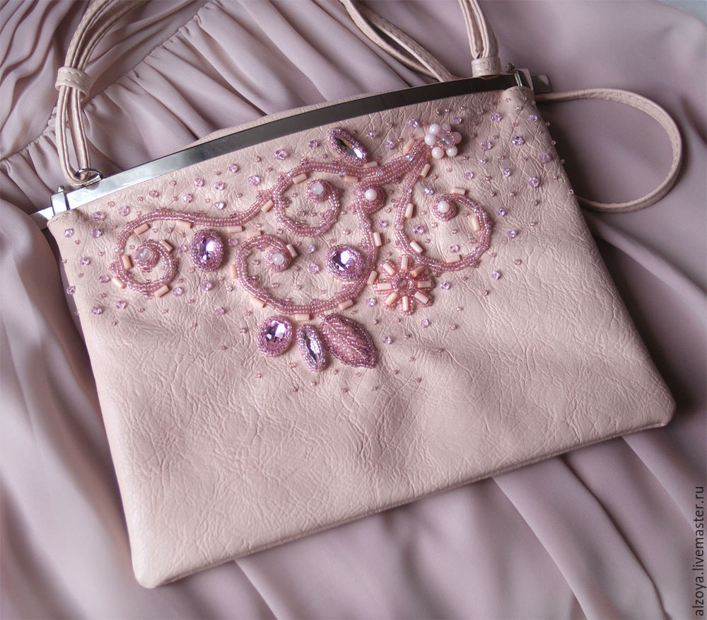 Beads can be used to decorate leather models. Get a ready-made embroidery pattern, multi-colored beads, and as a result a pretty attractive accessory will be released.But this method is also suitable only for bags made of thin leather. More dense models are well decorated with rhinestones. You will need monochromatic or multi-colored rhinestones and special glue for decoupage.