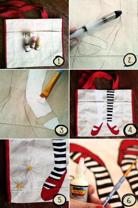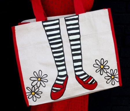 White bags are perfect for painting with acrylic paints. Beginner girls can draw volumetric flowers or fruits, and for professionals it is possible to write whole pictures.